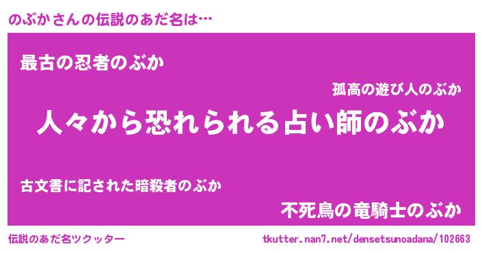 | ヒーロー風カッコイイあだ名 | 『仮面ノブダー』『正義の使者のぶか』 |