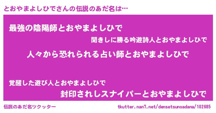 | ポケモン風あだ名 | 『トックウザ』『トオセウス』 |