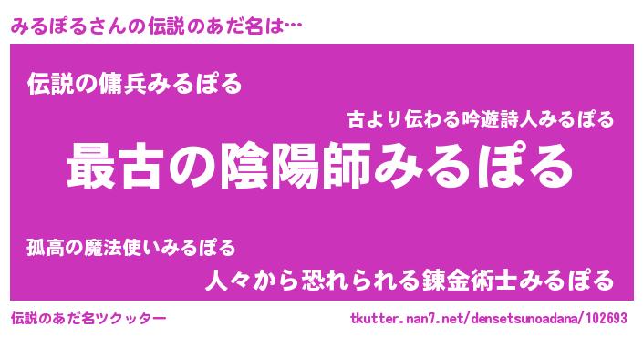 | ヒーロー風カッコイイあだ名 | 『ウルトラみるぽるマン』『仮面ミルダー』 |