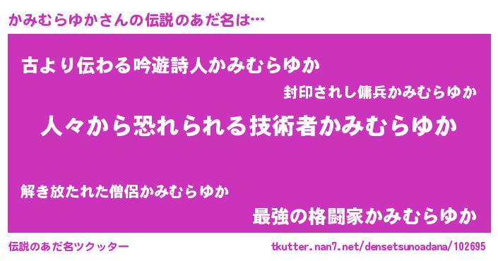 | ヘコむあだ名 | 『かみむらゆか(笑)』『なまこ酢』 |