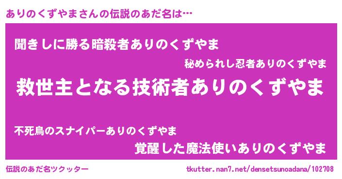 | ヒーロー風カッコイイあだ名 | 『天空の使者ありのくずやま』 |