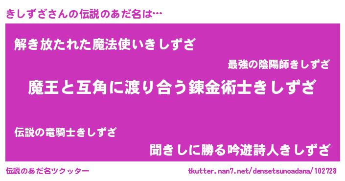| ヒーロー風カッコイイあだ名 | 『慈愛の使者きしずざ』『魔戒騎士キシ』 |