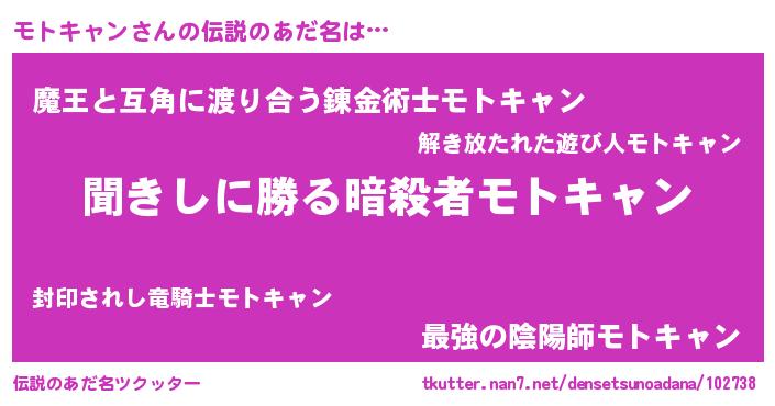 | 意味不明あだ名 | 『自称モトキャン』『永久保存モトキャン』 |