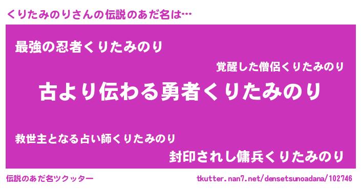 | 意味不明あだ名 | 『自称くりたみのり』 |