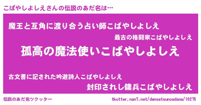 | 胡散臭い通販商品みたいなあだ名 | 『信頼と実績のサプリメント…その名も「こばやしよしえ」』 |