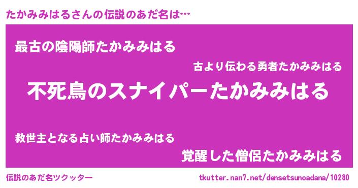 | 胡散臭い通販商品みたいなあだ名 | 『モテモテ間違いなし霊験あらたかなお札…その名も「たかみみはる」』 |