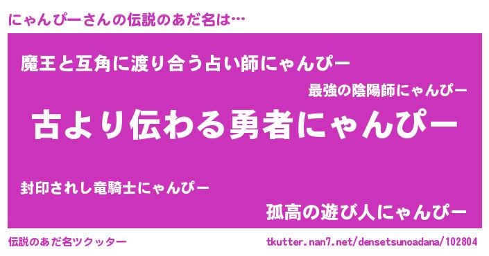 | 意味不明あだ名 | 『自称にゃんぴー』『永久保存にゃんぴー』 |