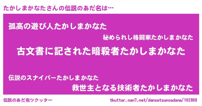 | ヘコむあだ名 | 『たかしまかなた(笑)』『たかを』 |