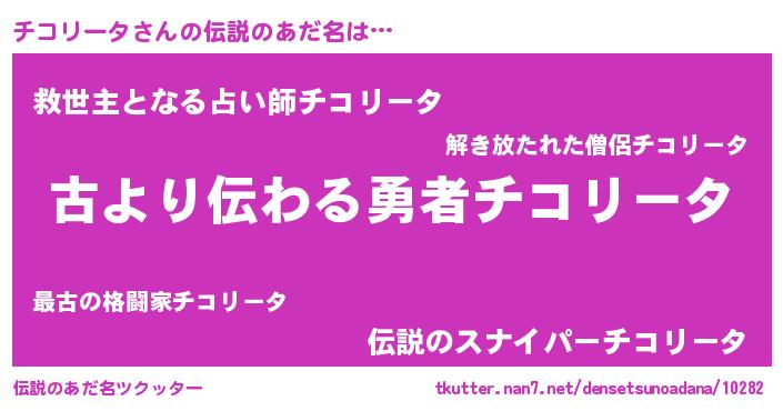 | ヒーロー風カッコイイあだ名 | 『仮面チコダー』『ネオチコリータ』 |