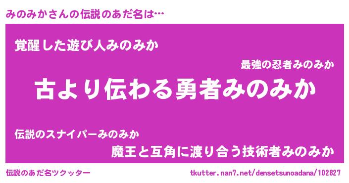 | 胡散臭い通販商品みたいなあだ名 | 『来世でも幸せになれる水素水…その名も「みのみか」』 |
