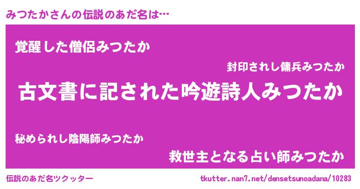 | ヒーロー風カッコイイあだ名 | 『ネオミツタカ』『黄金騎士ミツ』 |
