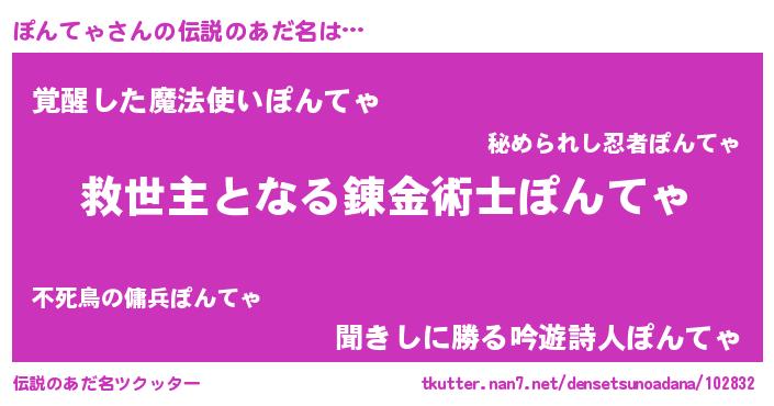 | 意味不明あだ名 | 『ニラ科ぽんてゃ属』『自称ぽんてゃ』 |