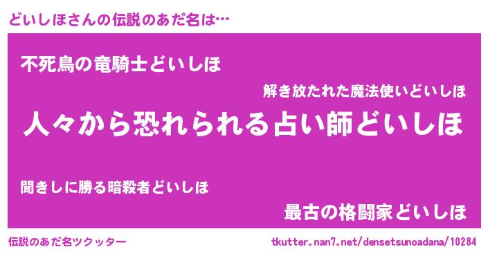 | ヒーロー風カッコイイあだ名 | 『正義の使者どいしほ』『炎刃騎士ドイ』 |