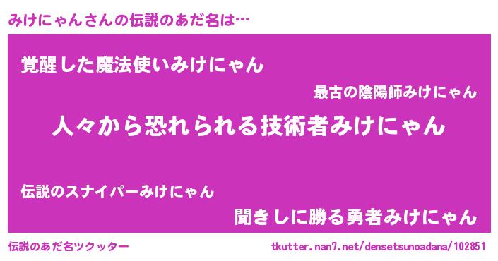 | ヘコむあだ名 | 『みけを』『みけにゃん(小並感)』 |