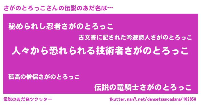 | ヒーロー風カッコイイあだ名 | 『正義の使者さがのとろっこ』 |