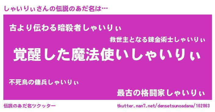 | ヒーロー風カッコイイあだ名 | 『仮面シャダー』『最強戦士シャイリィ』 |