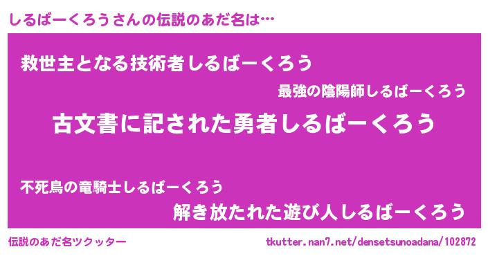 | 意味不明あだ名 | 『自称しるばーくろう』 |