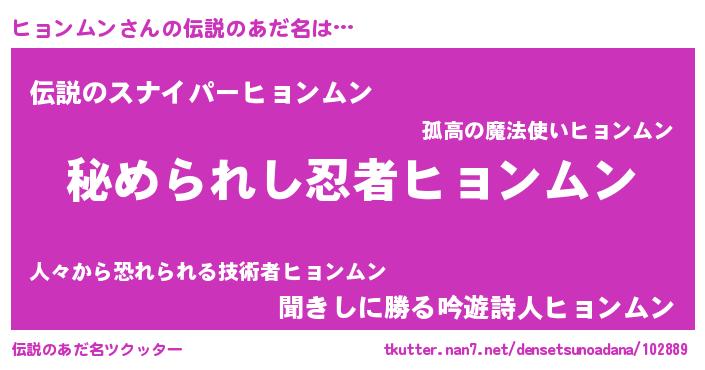 | ヒーロー風カッコイイあだ名 | 『仮面ヒョダー』『スーパーヒョンムン』 |