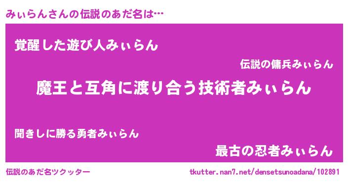 | ヒーロー風カッコイイあだ名 | 『愛の使者みぃらん』『炎刃騎士ミィ』 |