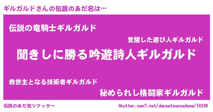 | 意味不明あだ名 | 『自称ギルガルド』『永久保存ギルガルド』 |