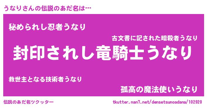 | ヒーロー風カッコイイあだ名 | 『スーパーウナリ』『ウルトラうなりマン』 |