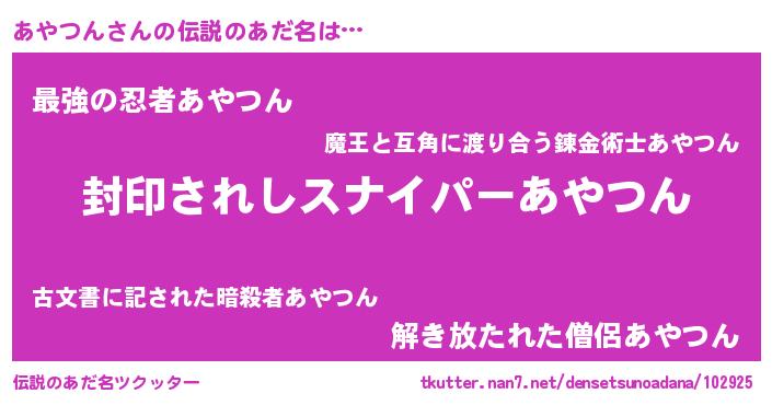 | ヒーロー風カッコイイあだ名 | 『スーパーアヤツン』『仮面アヤダー』 |