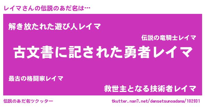 | ヘコむあだ名 | 『レイマ(震え声)』『レイっぺ』 |