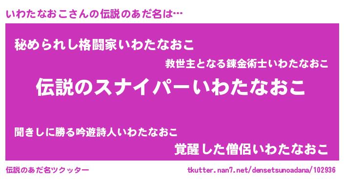 | ヒーロー風カッコイイあだ名 | 『スーパーイワタナオコ』『炎刃騎士イワ』 |