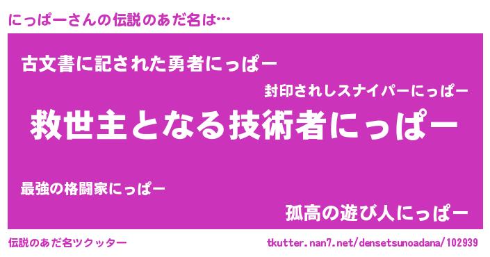 | ヘコむあだ名 | 『にっぱー(小並感)』『にっぷりん』 |