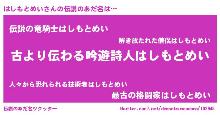 | 意味不明あだ名 | 『永久保存はしもとめい』 |