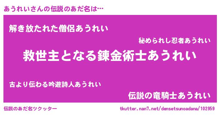 | 意味不明あだ名 | 『住所不定無職あうれい(85歳)』 |
