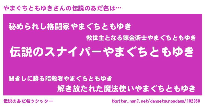 | 胡散臭い通販商品みたいなあだ名 | 『必ず成功する霊験あらたかなお札…その名も「やまぐちともゆき」』 |