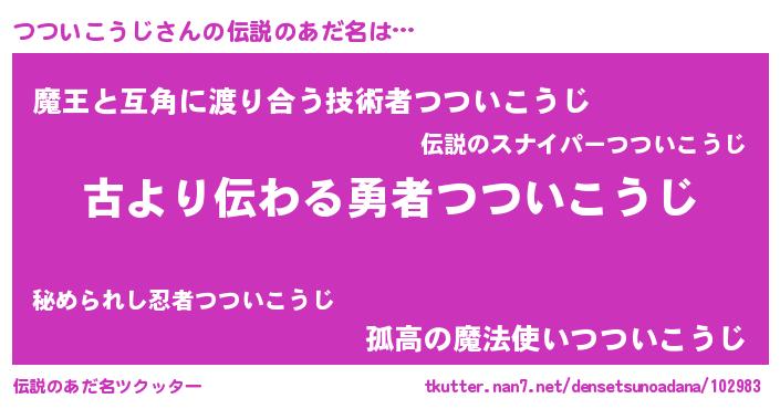 | ヒーロー風カッコイイあだ名 | 『ネオツツイコウジ』『炎刃騎士ツツ』 |