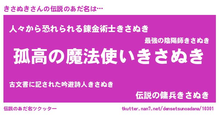 | ヒーロー風カッコイイあだ名 | 『仮面キサダー』『銀牙騎士キサ』 |