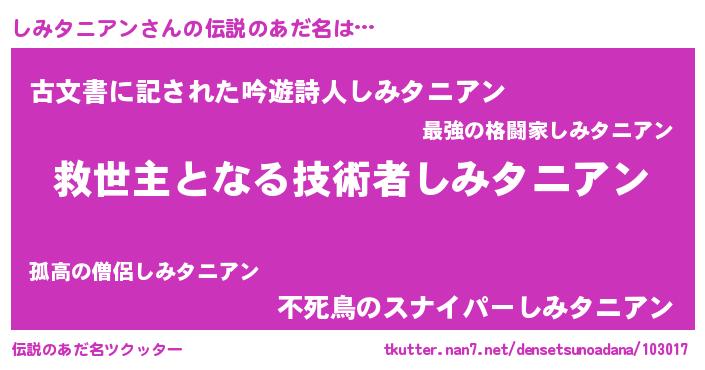 | ヒーロー風カッコイイあだ名 | 『慈愛の使者しみタニアン』 |
