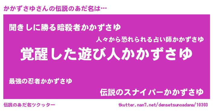 | 男性向けラノベタイトル風あだ名 | 『かかずさゆ~年齢イコール彼女いない歴の魔法使い~』 |