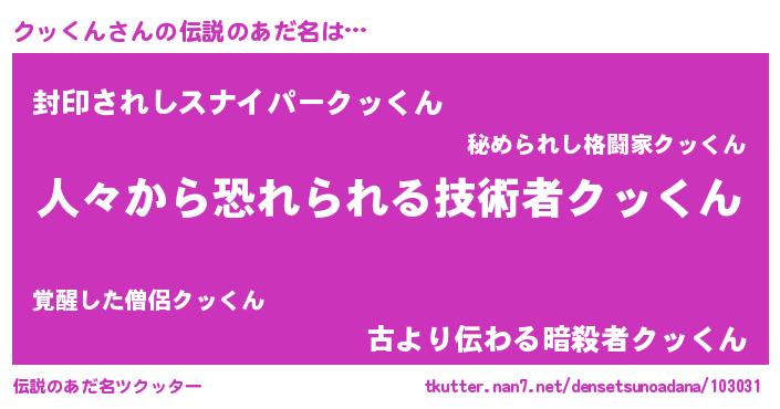 | 意味不明あだ名 | 『エリンギ科クッくん属』『自称クッくん』 |