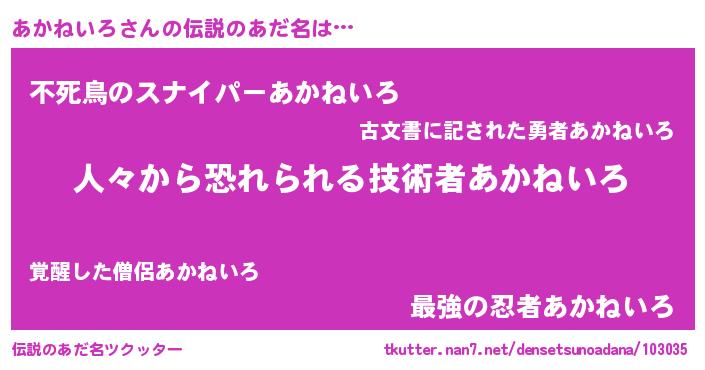 | 意味不明あだ名 | 『住所不定無職あかねいろ(10歳)』 |