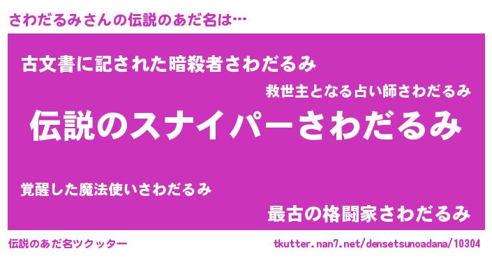 | ヒーロー風カッコイイあだ名 | 『仮面サワダー』『スーパーサワダルミ』 |