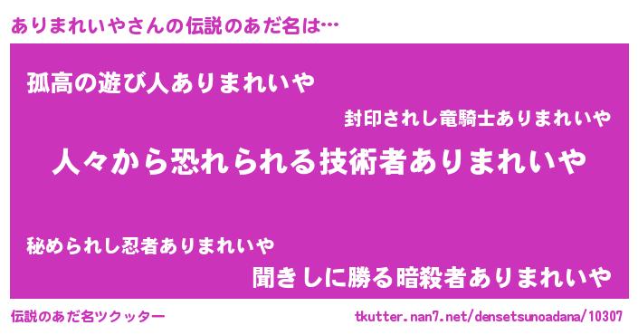 | ヒーロー風カッコイイあだ名 | 『友情の使者ありまれいや』 |