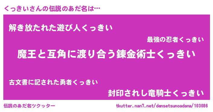 | 意味不明あだ名 | 『住所不定無職くっきい(84歳)』 |