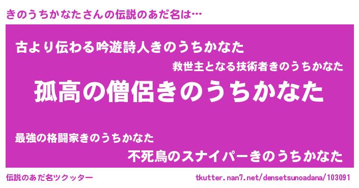 | ヒーロー風カッコイイあだ名 | 『暗黒騎士キノ』『ネオキノウチカナタ』 |