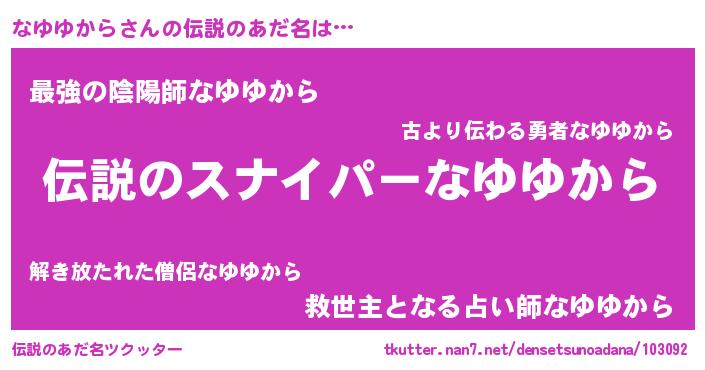 | ヒーロー風カッコイイあだ名 | 『仮面ナユダー』『スーパーナユユカラ』 |