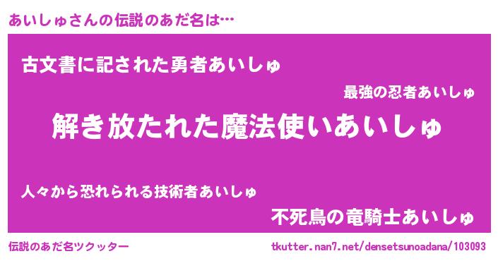 | 意味不明あだ名 | 『とにかく怪しいあいしゅ』 |