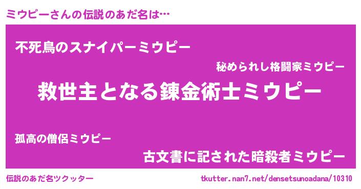 | ヒーロー風カッコイイあだ名 | 『天空の使者ミウピー』『ネオミウピー』 |