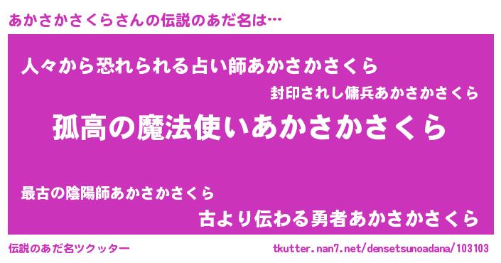 | 男性向けラノベタイトル風あだ名 | 『緋弾のアカサカサクラ』 |
