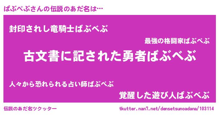 | ヒーロー風カッコイイあだ名 | 『究極戦士バブベブ』『ネオバブベブ』 |