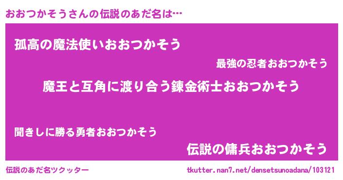 | ヒーロー風カッコイイあだ名 | 『愛の使者おおつかそう』『仮面オオダー』 |
