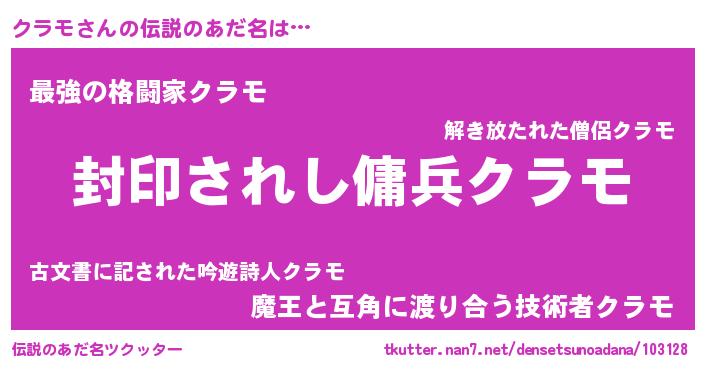 | 胡散臭い通販商品みたいなあだ名 | 『億万長者になれる水晶球…その名も「クラモ」』 |