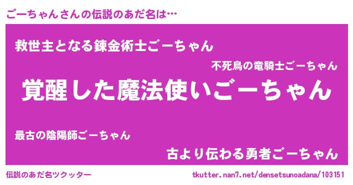 | ヒーロー風カッコイイあだ名 | 『幻影騎士ゴー』『最強戦士ゴーチャン』 |